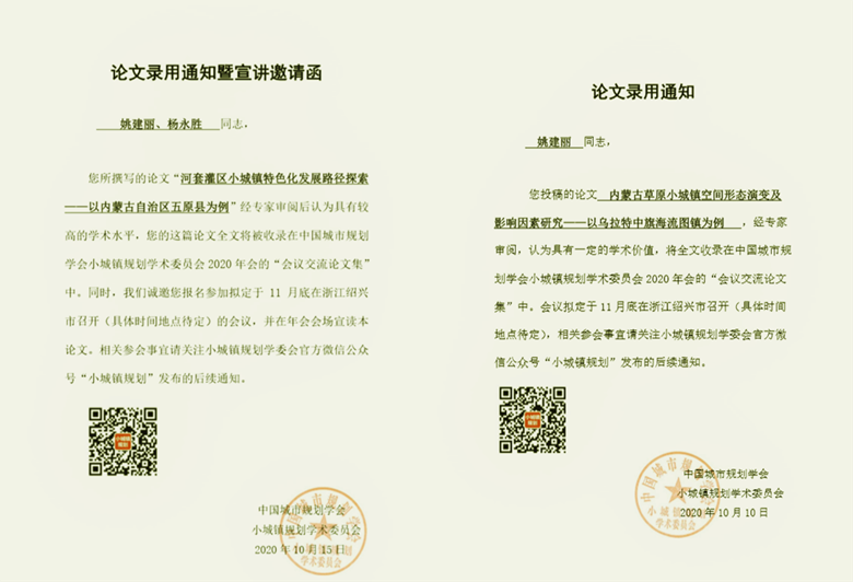 我院選送的論文被《小城鎮(zhèn)規(guī)劃學術委員會 2020 年會會議交流論文集》收錄兩篇