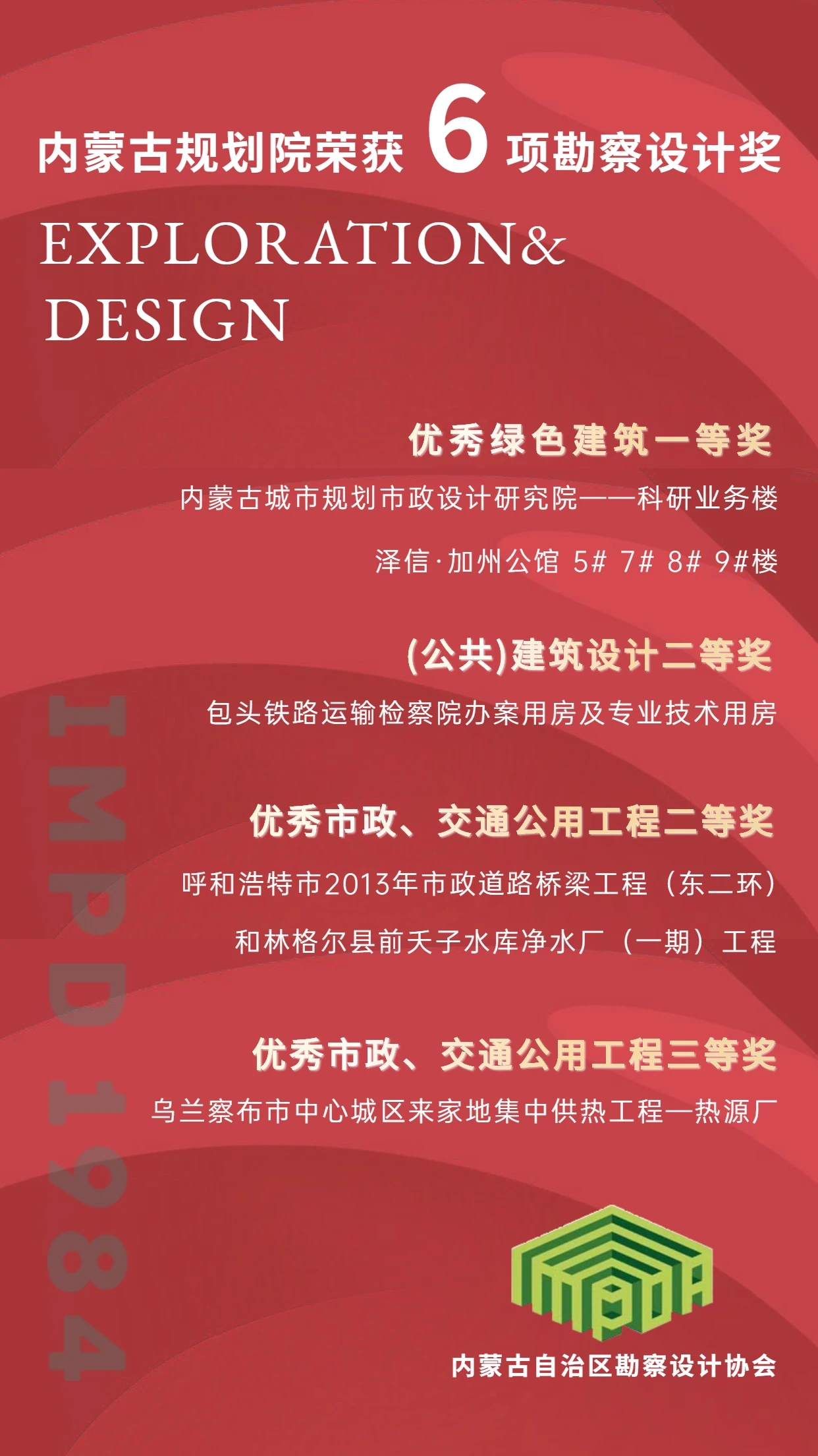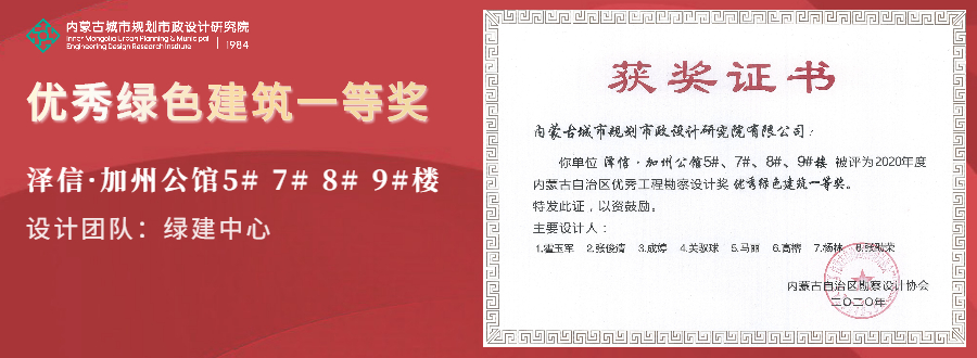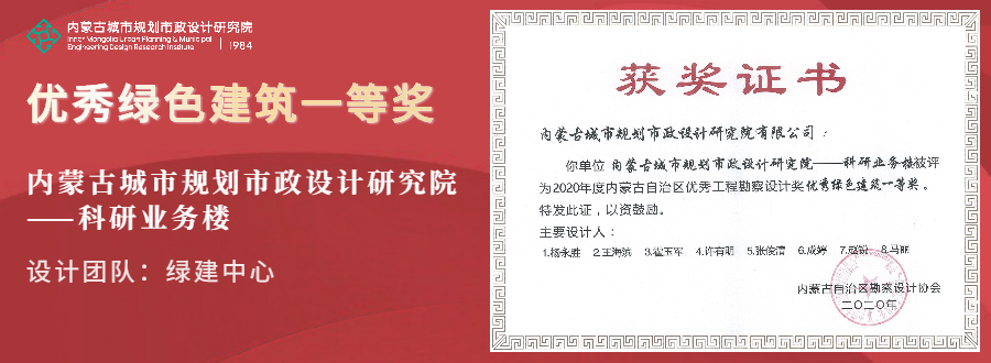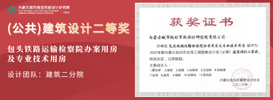 近日,內(nèi)蒙古自治區(qū)勘察設(shè)計(jì)協(xié)會(huì)公布了2020年度自治區(qū)優(yōu)秀工程勘察設(shè)計(jì)獎(jiǎng)獲獎(jiǎng)名單,我院設(shè)計(jì)作品在眾多項(xiàng)目中脫穎而出,一舉攬獲優(yōu)秀綠色建筑,公共建筑設(shè)計(jì),優(yōu)秀市政、交通公用工程共3個(gè)組別的6個(gè)獎(jiǎng)項(xiàng)。其中,在“優(yōu)秀建筑電氣、綠色建筑、水系統(tǒng)、智能化”組別中僅產(chǎn)生3個(gè)一等獎(jiǎng),我院占有2個(gè)席位。