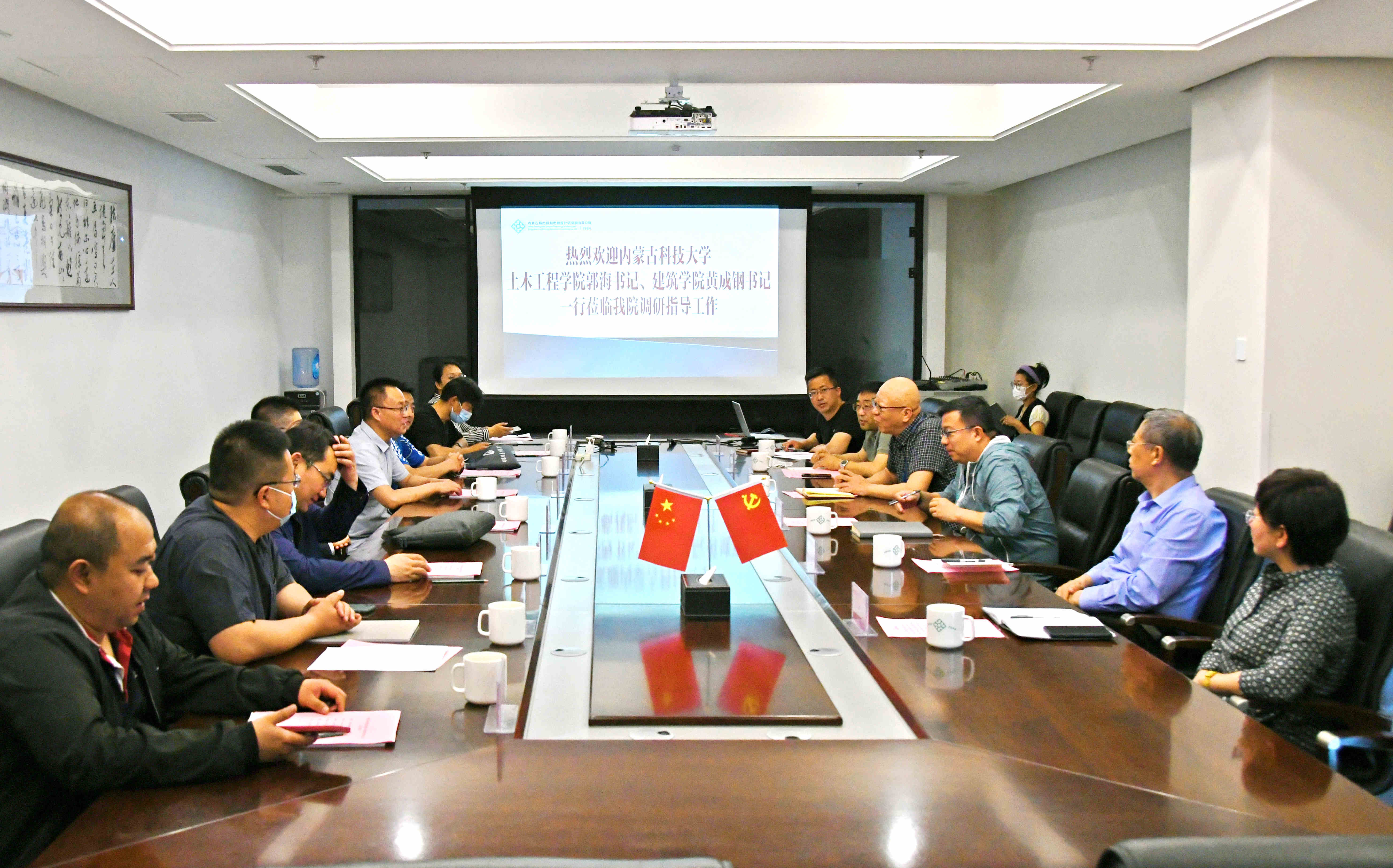 王海濱院長向郭海書記、黃成鋼書記一行介紹了我院的基本情況。并表示我院與內蒙古科技大學土木工程學院和建筑學院在綠色建筑研究等領域有廣泛的技術與人才合作空間,希望雙方加強溝通聯(lián)系,也期望內蒙古科技大學培養(yǎng)和推薦更多的優(yōu)秀畢業(yè)生到我院發(fā)展,共同為提升自治區(qū)勘察設計行業(yè)技術水平貢獻智慧和力量。
