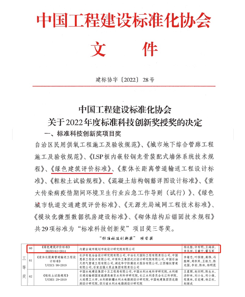 2月28日,2022年度標(biāo)準(zhǔn)創(chuàng)新獎(jiǎng)?lì)C獎(jiǎng)典禮暨中國工程建設(shè)標(biāo)準(zhǔn)化協(xié)會(huì)學(xué)術(shù)大會(huì)在北京召開。我院主編的《綠色建筑評價(jià)標(biāo)準(zhǔn)》(DBJ03-61-2014)榮獲“標(biāo)準(zhǔn)科技創(chuàng)新獎(jiǎng)”項(xiàng)目獎(jiǎng)三等獎(jiǎng)。