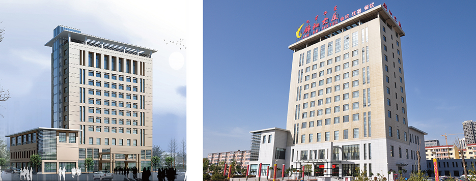 由十二層主樓和L型裙房圍合而成,有教學、餐飲、住宿、活動健身、接待及輔助用房等構成。