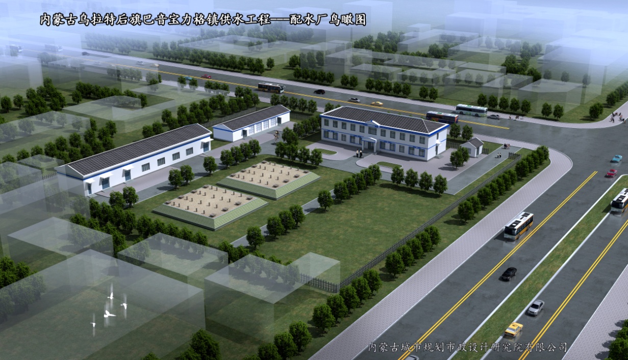 《烏拉特后旗巴音寶力格鎮(zhèn)供水工程初步設(shè)計(jì)、施工圖》2015年——該項(xiàng)目主要工程內(nèi)容為(1)水源地:新增11眼水源井及配套設(shè)備,新建4610米連井管線,管徑DN200mm-400mm;(2)配水廠:新建兩座1500m3清水池、二級加壓泵房、加氯間、配電間、綜合辦公樓、機(jī)修間及廠區(qū)配套工程;(3)輸配水管線:新建31900米輸水管線,2730米配水管線,管徑DN400mm。項(xiàng)目總投資為5312萬元。