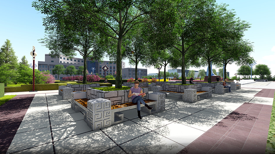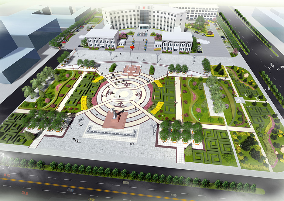 以四子王旗政府廣場景觀設(shè)計(jì)為例。本項(xiàng)目位于四子王旗中心城區(qū)新城區(qū)與老城區(qū)交接處,處于城市綠地系統(tǒng)的中心位置,是未來城市發(fā)展的“綠色心臟”。項(xiàng)目設(shè)計(jì)主要體現(xiàn)“承平包容,和諧開放”的主思想,即蒙元文化、草原文化與當(dāng)?shù)鬲?dú)有的神舟文化。將三種不同的文化元素以抽象具象的形式融入設(shè)計(jì)當(dāng)中,即體現(xiàn)民族文化的同時(shí)又體現(xiàn)了當(dāng)?shù)鬲?dú)有的特色文化,設(shè)計(jì)整體將成為四子王旗文化窗口和形象名片。