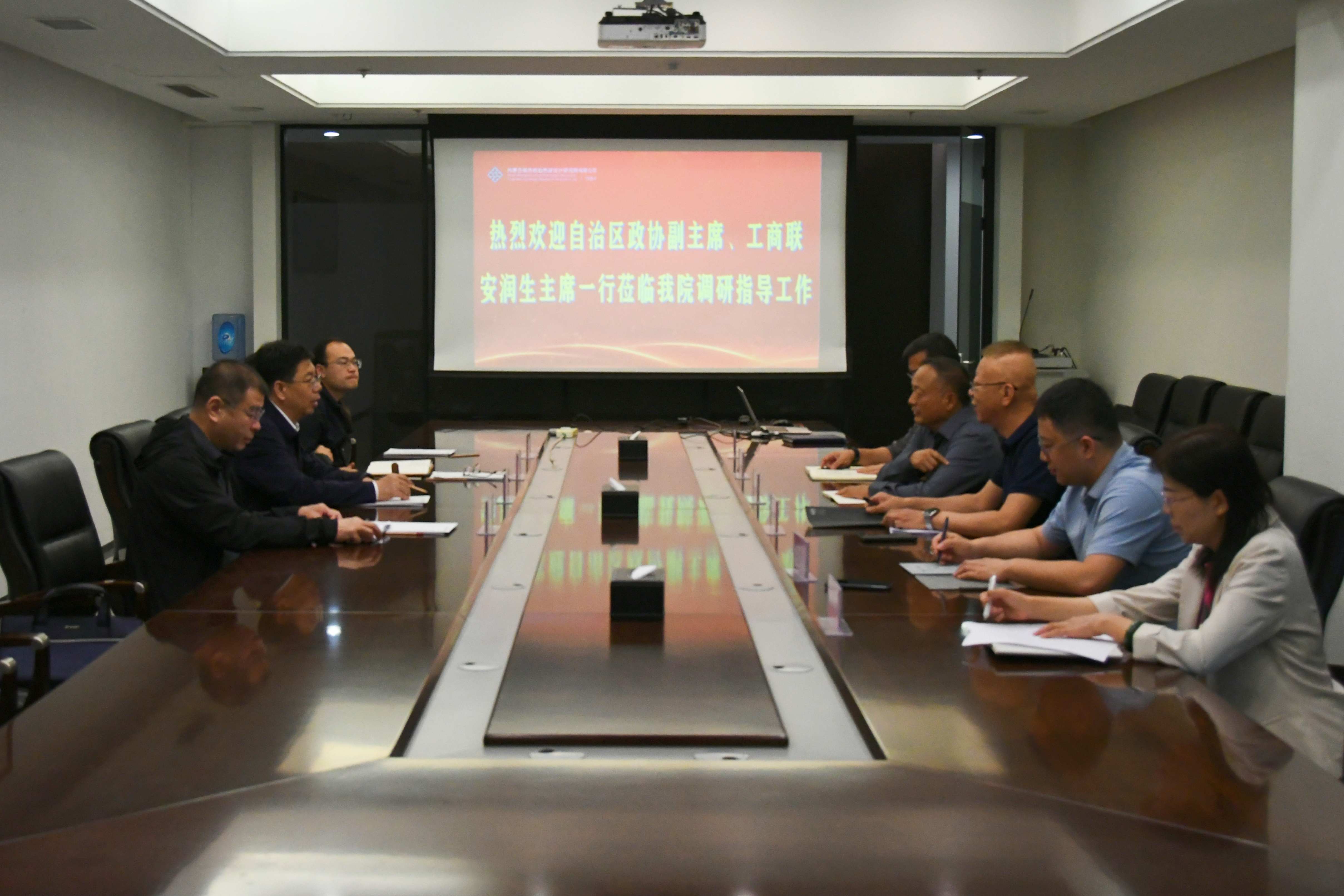 調(diào)研期間,安主席一行參觀了我院黨建活動陣地和科研業(yè)務(wù)樓既有化辦公綠色改造的運(yùn)營情況。自治區(qū)工商聯(lián)黨組成員、副主席周金樁,調(diào)研室負(fù)責(zé)人、一級調(diào)研員王稼祥等陪同調(diào)研。